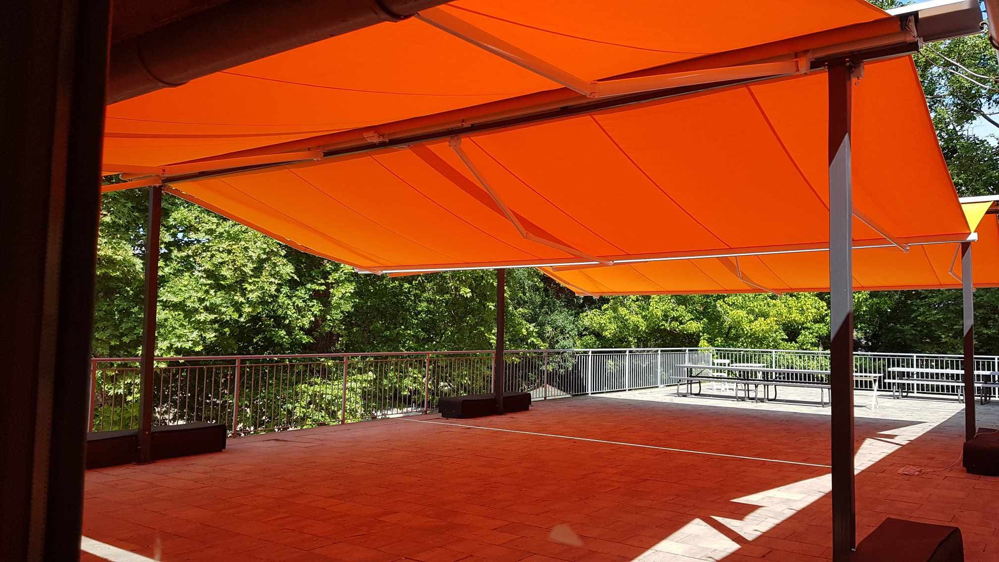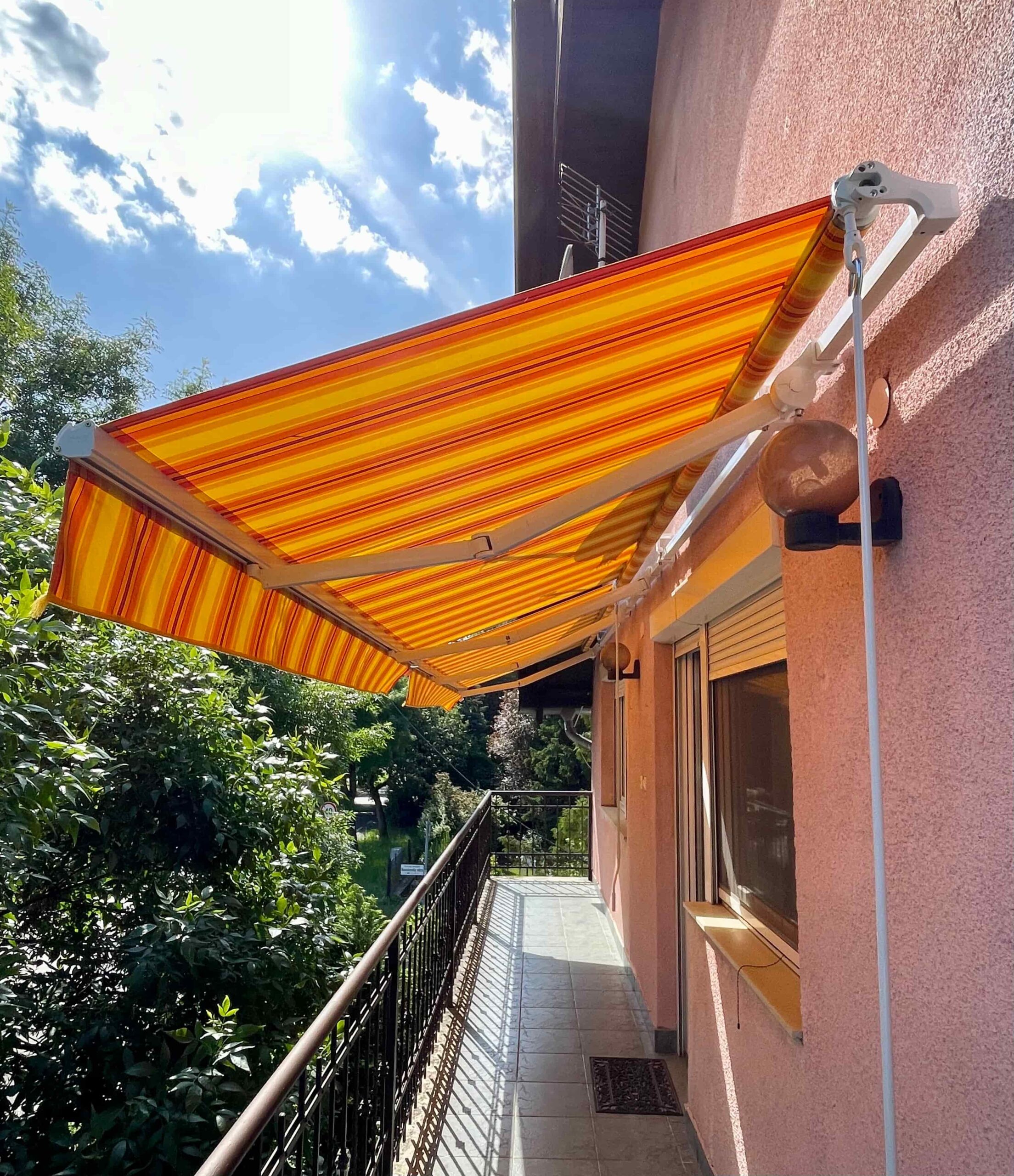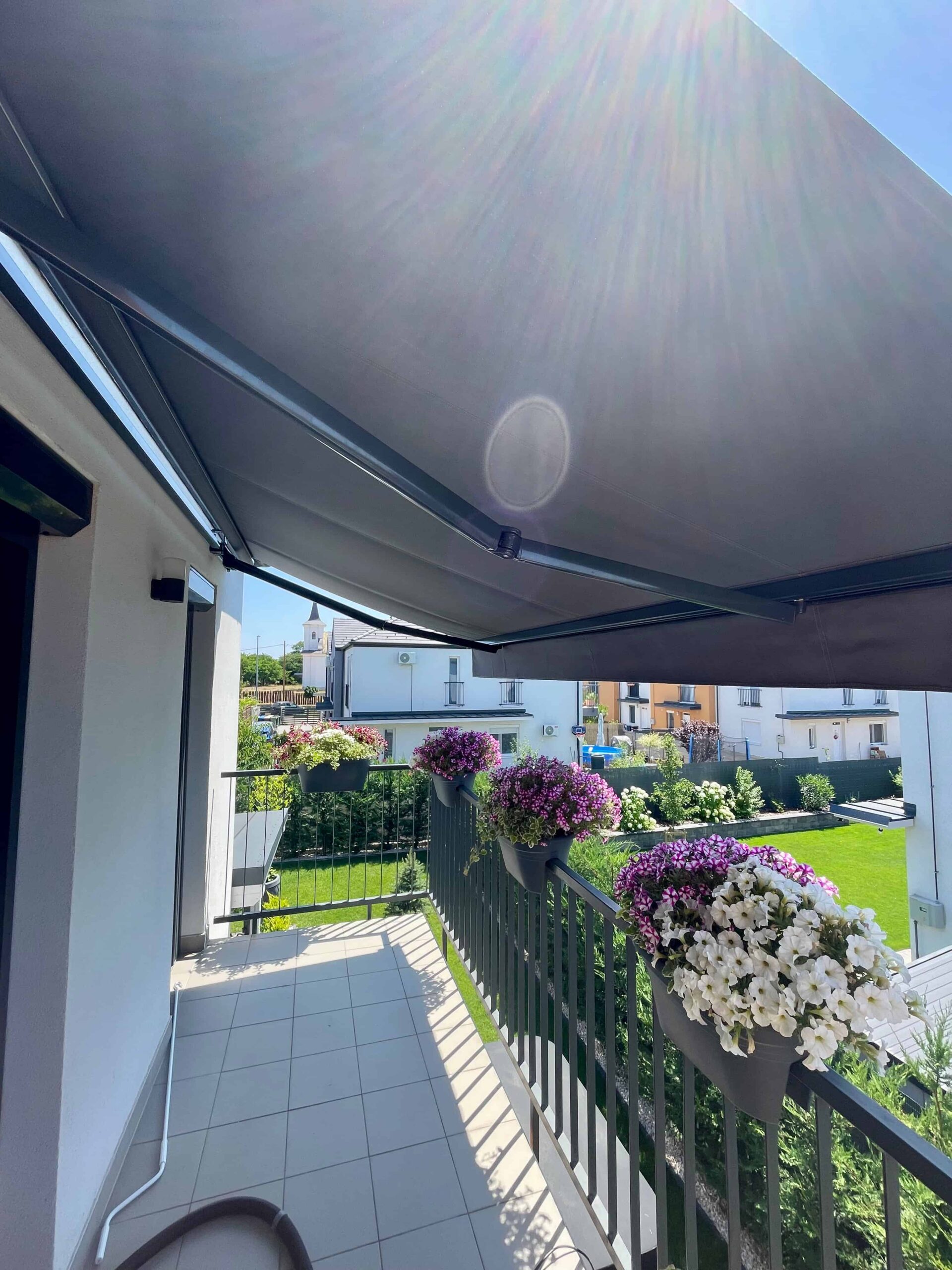 Ez a napellenző nem csak nappali, hanem esti funkcióval is bír. Míg nappal árnyékot biztosít az alatta lévőnek este a hangulatosan megvilágított teraszon ücsöröghetünk a csuklókarokba épített fehér LED fénynek köszönhetően. A fény erőssége szabályozható applikáción keresztül, vagy távirányítóval.